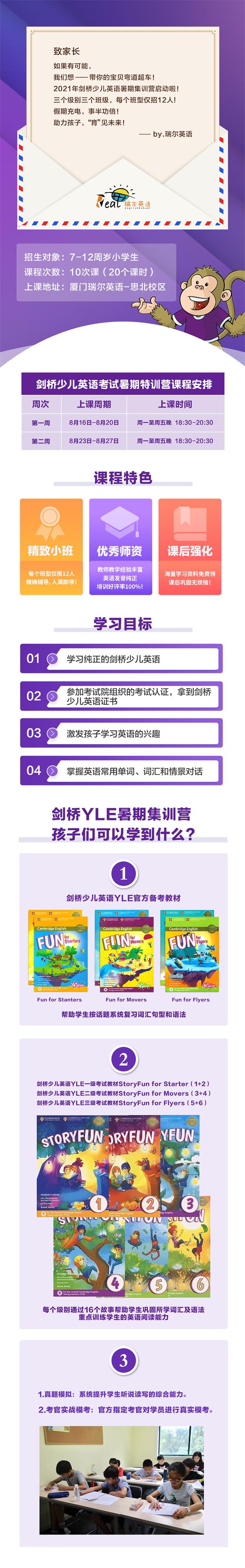 厦门2021年剑桥少儿英语考试暑期集训营正式启动啦!